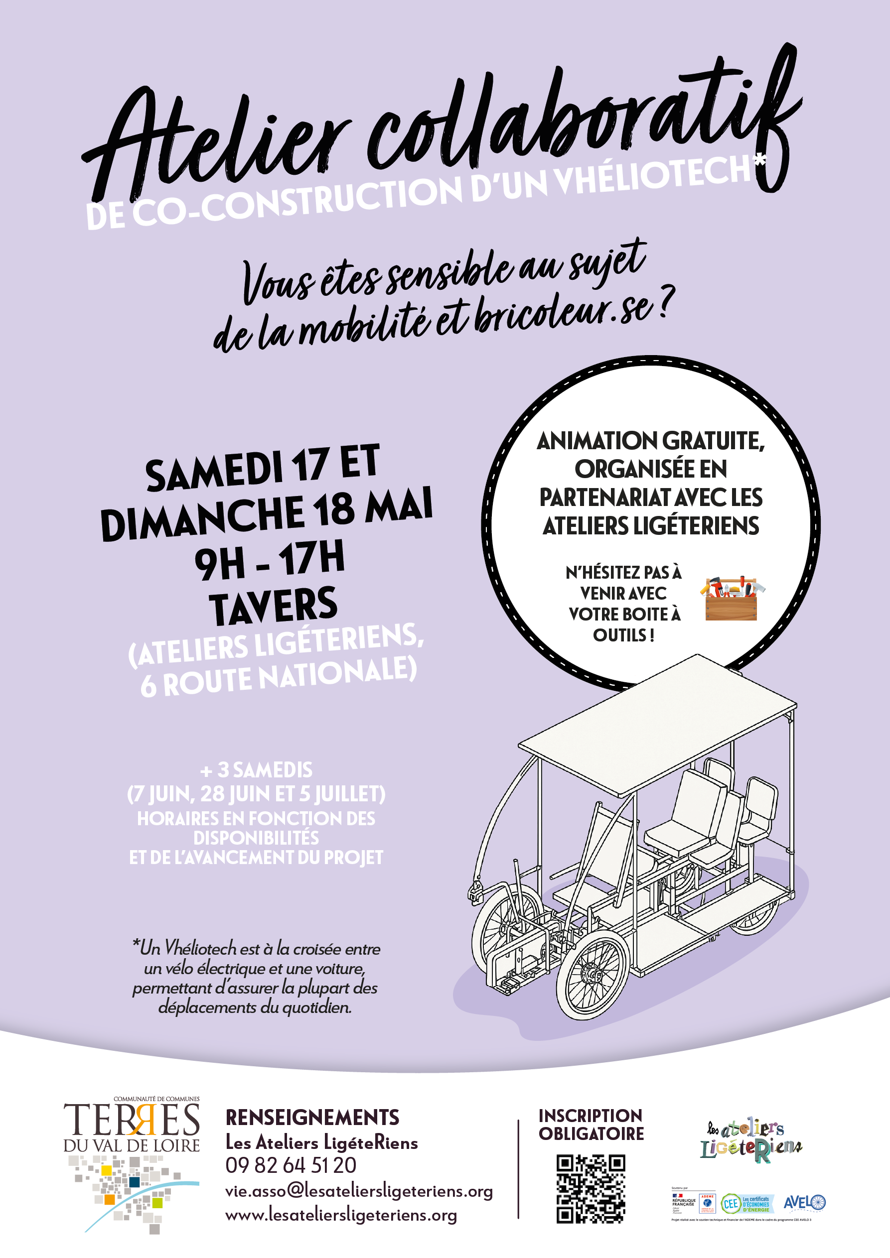 Bonjour à toutes et à tous, Nous organisons la co-construction d’un second Vhéliotech ! Si vous souhaitez vivre cette expérience collaborative, non-lucrative et libre, rendez-vous : aux Ateliers LigéteRiens, 6 […]...